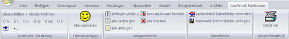 - Neu(Highlight): Auch die Vorlagen für die neuen Formulare können auf dem gleichen Weg wie Word-Standardtexte bearbeitet werden (z.B. zum Vorausfüllen fester Kanzleidaten oder zum Ankreuzen häufig verwendeter Modul-Optionen in den Formularen).