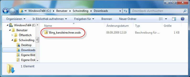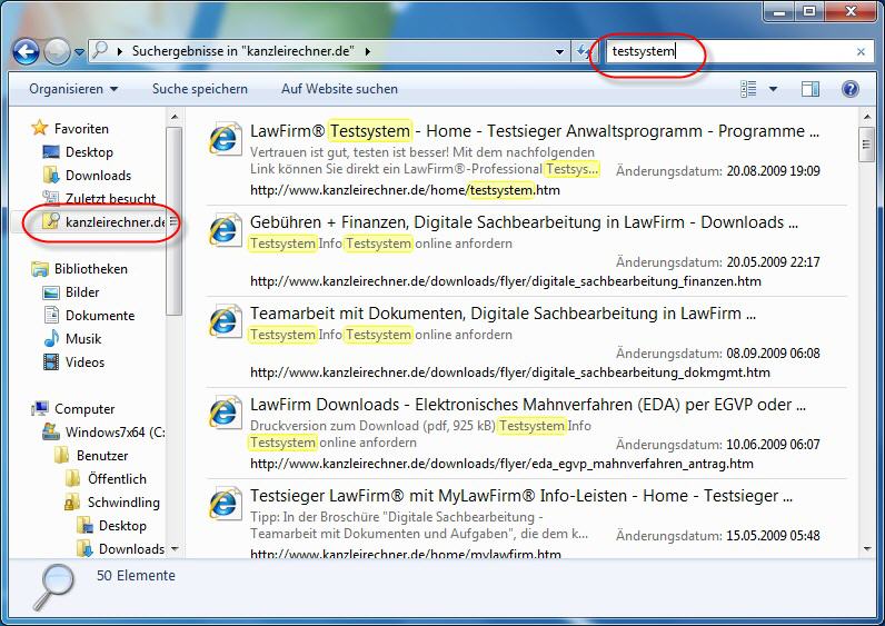 Suche auf www.kanzleirechner.de mit dem Windows 7 Explorer | |