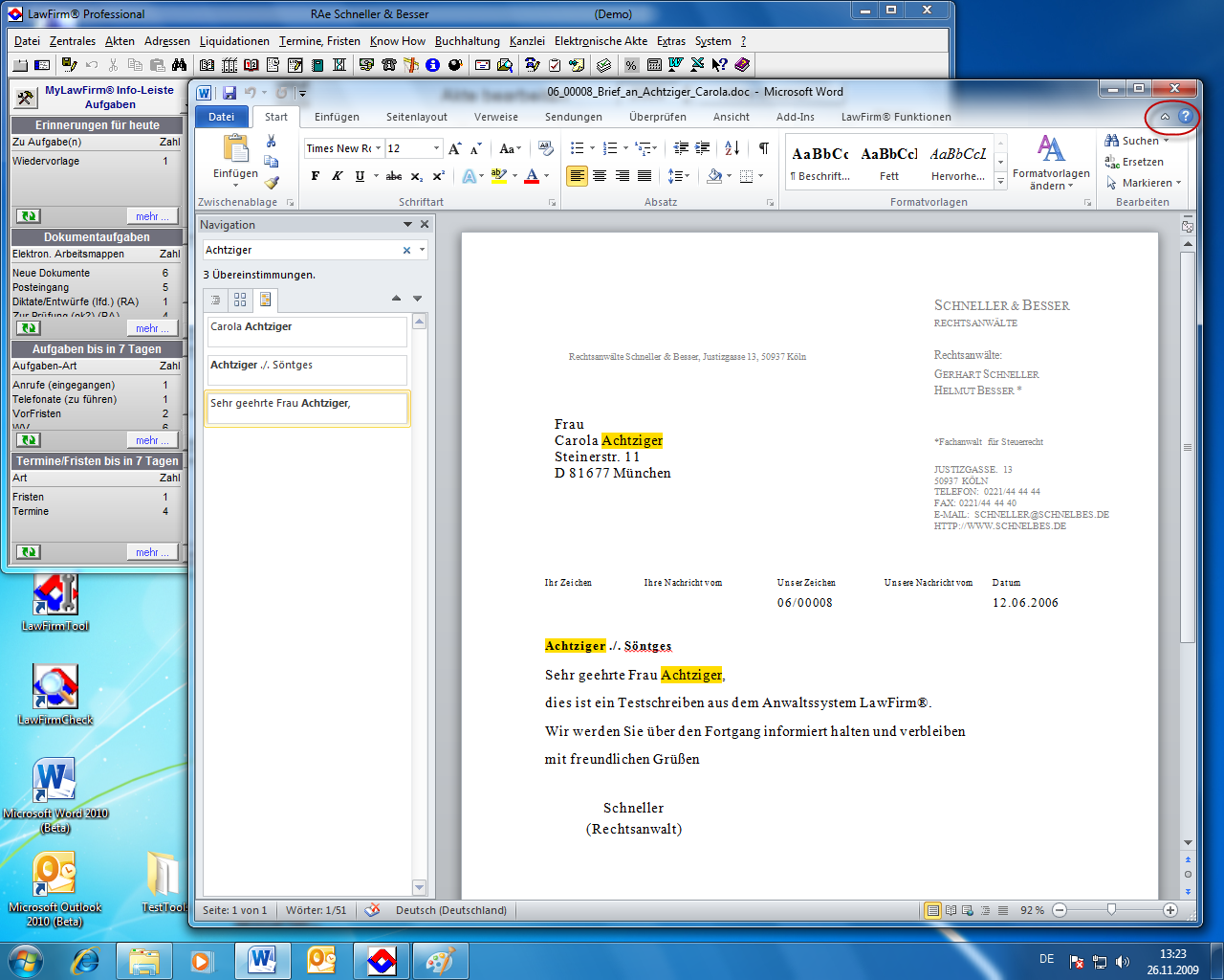 die neue Office Version 2010 (Beta) mit der kommenden LawFirm® Version,