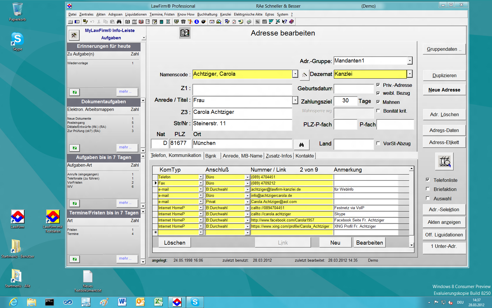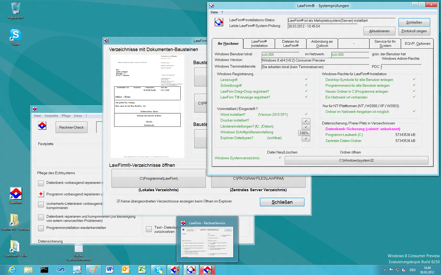 Windows® 8 und der LawFirm® Version 8.2p-4: