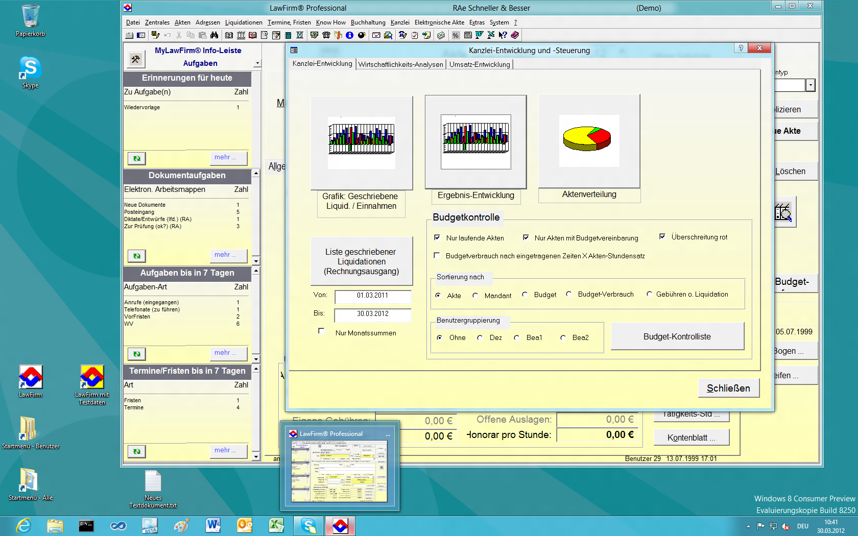 LawFirm® Professional - Fenster "Kanzlei-Entwicklung"