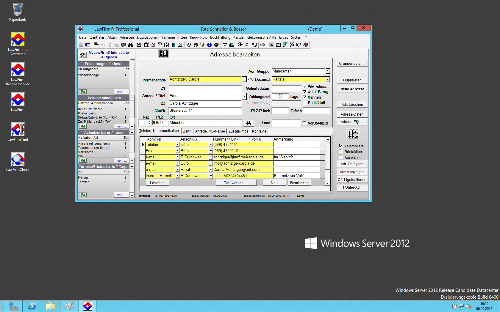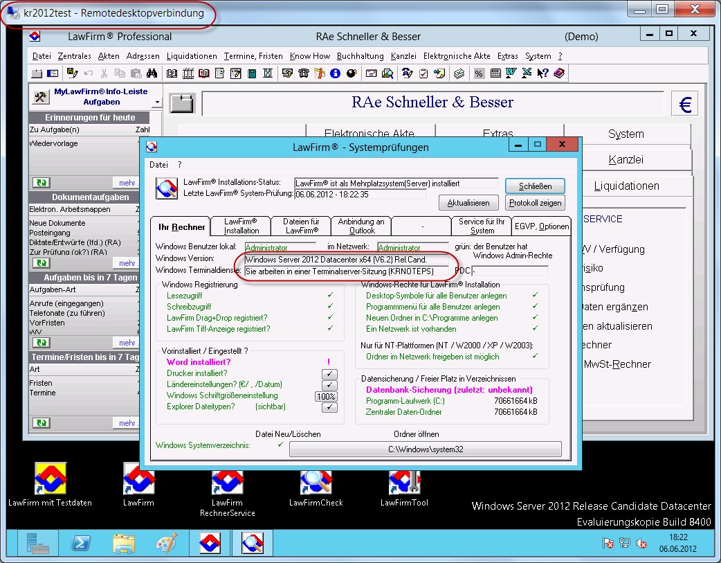 Enterprise - im Remotedesktop-Fenster mit LawFirm