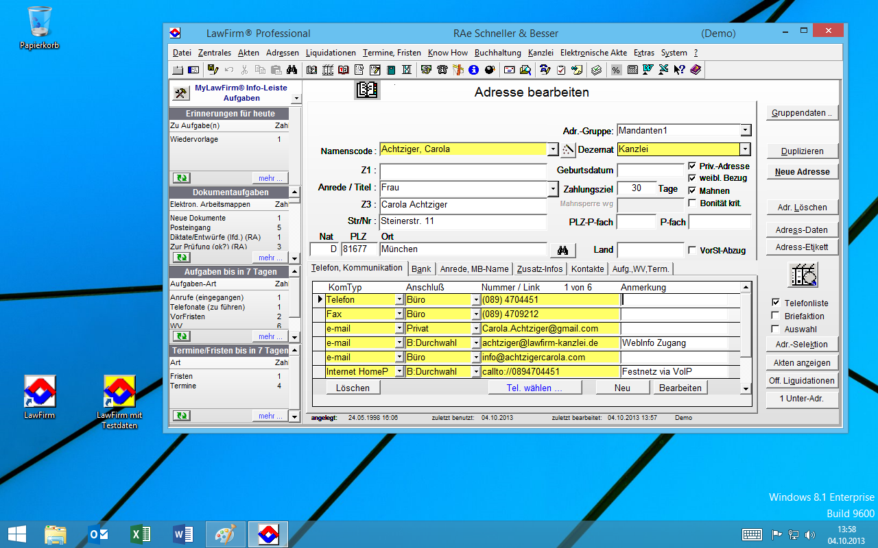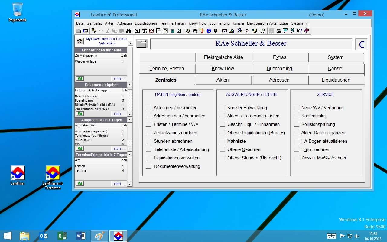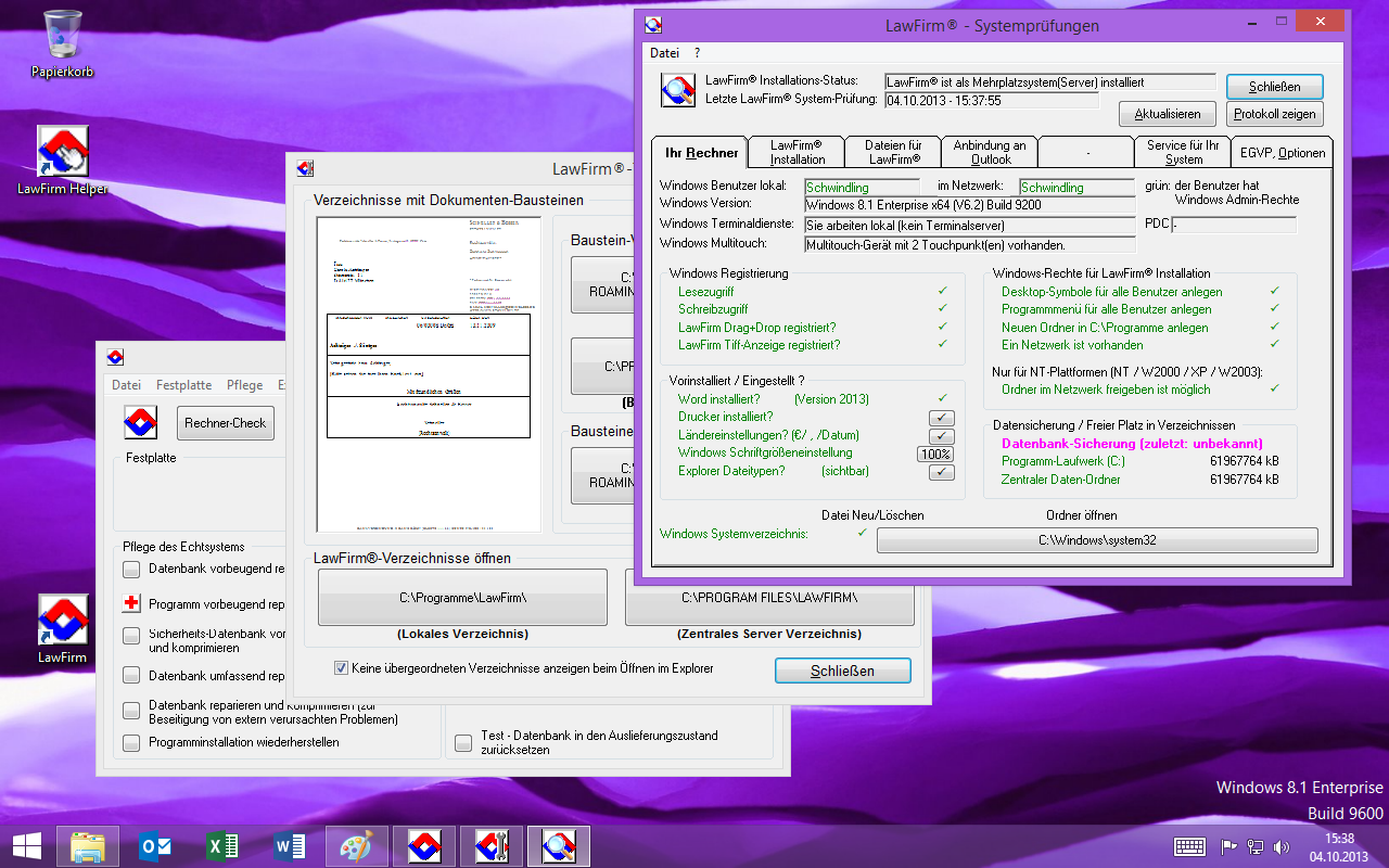 Windows® 8.1 und der LawFirm® Version 8.2r:
