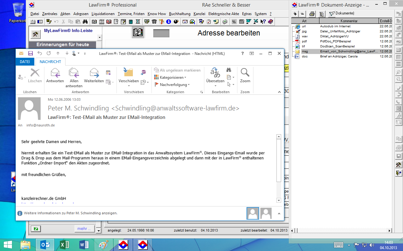 Outlook 2013 (aus dem Integrationstest mit den Windows 8