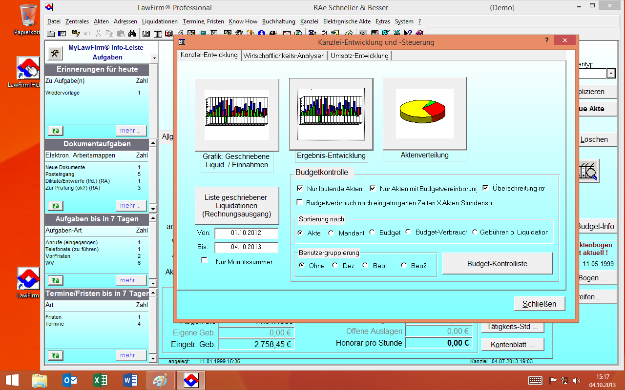 LawFirm® Professional - Fenster "Kanzlei-Entwicklung"